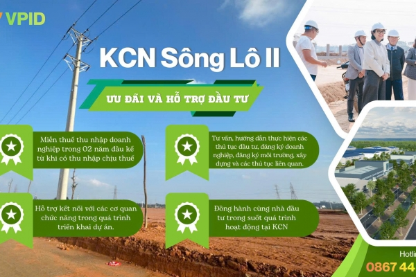 Trong làn sóng dịch chuyển chuỗi cung ứng toàn cầu, KCN Sông Lô II được định vị là điểm đến chiến lược tại trung tâm vùng trung du phía Bắc, với chính sách ưu đãi đầu tư cạnh tranh và môi trường pháp lý minh bạch.