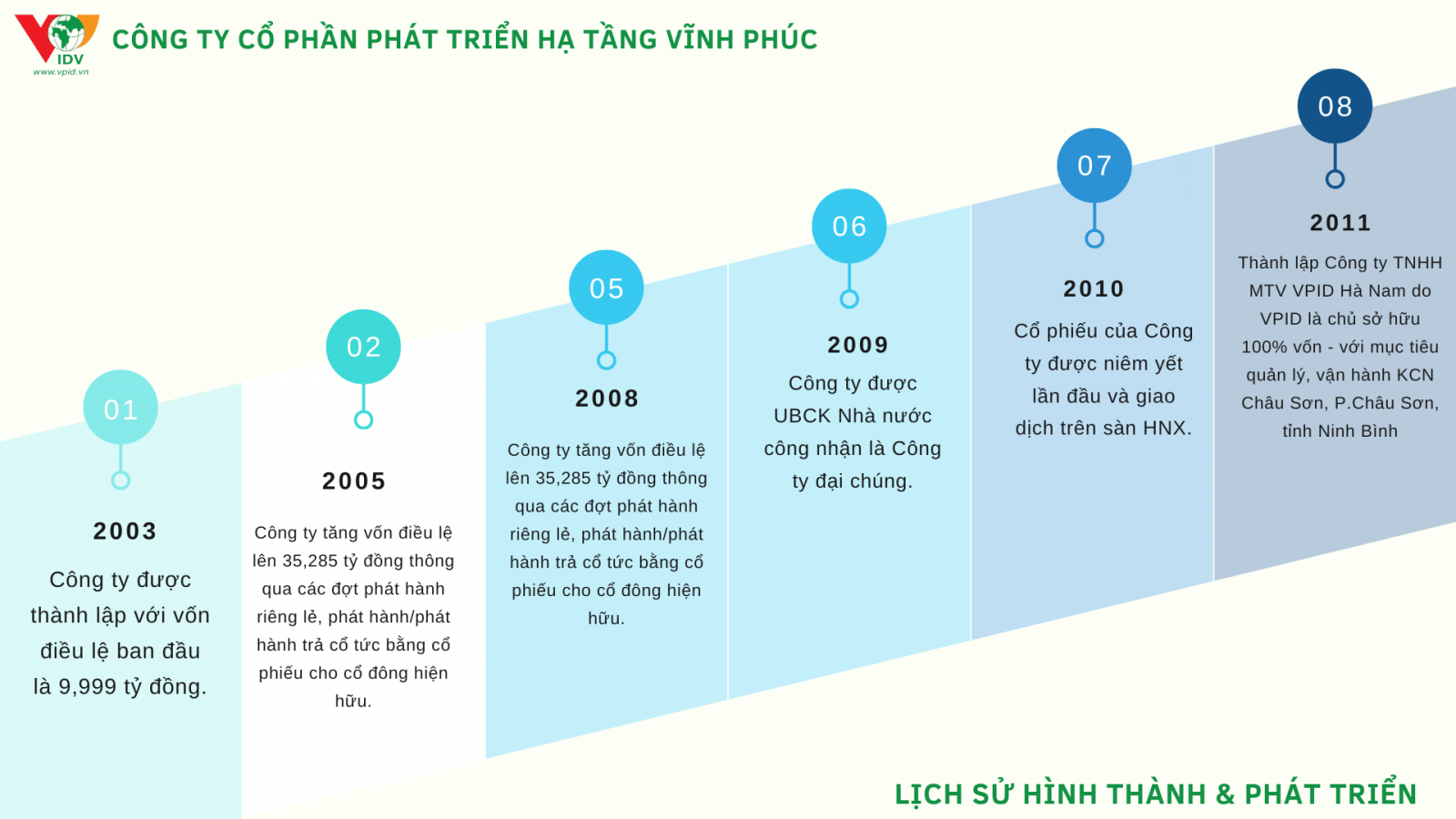 Ngày 12/09/2019 Thành lập Công ty cổ phần VPID Vĩnh Phúc do VPID nắm giữ 70% vốn  -  với mục tiêu xây dựng, quản lý, vận hành nhà xưởng cho thuê.